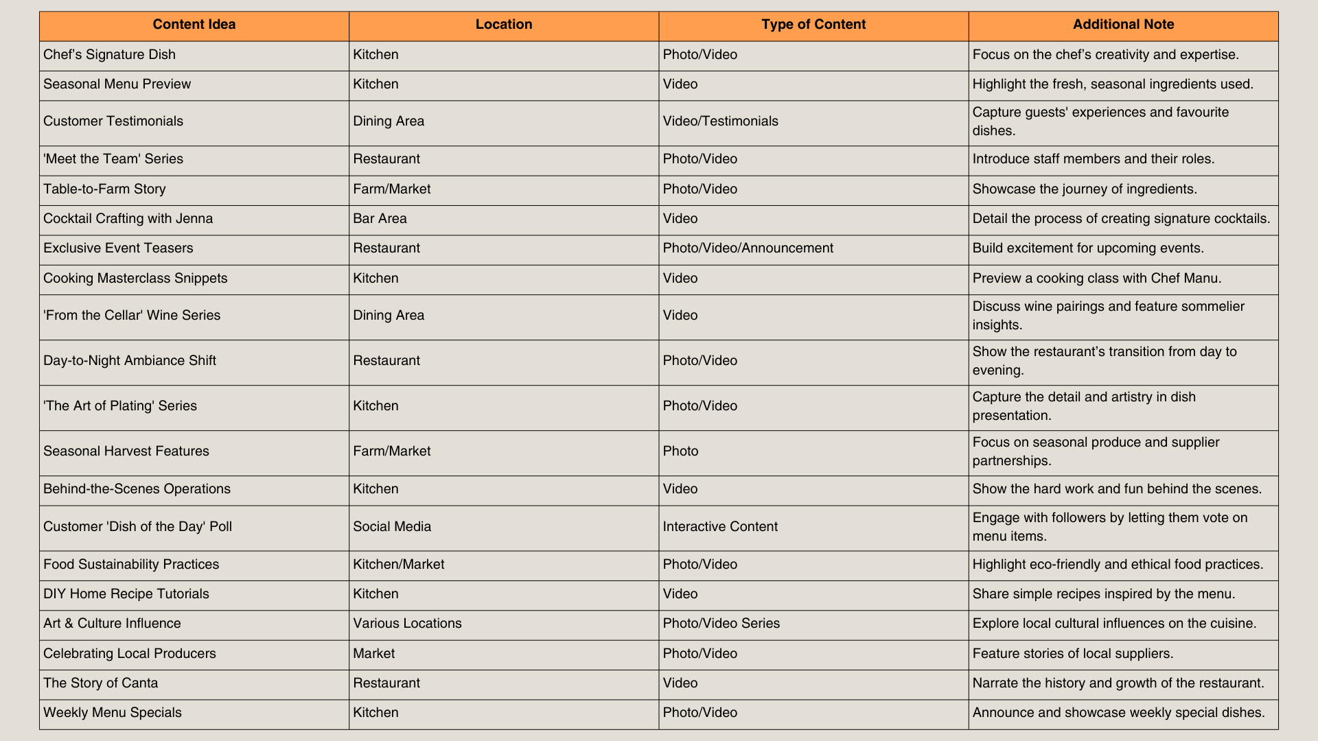 Content Creation: Produced visually appealing and on-brand content, including photos and creative posts, to showcase Can’ta’s unique concept.